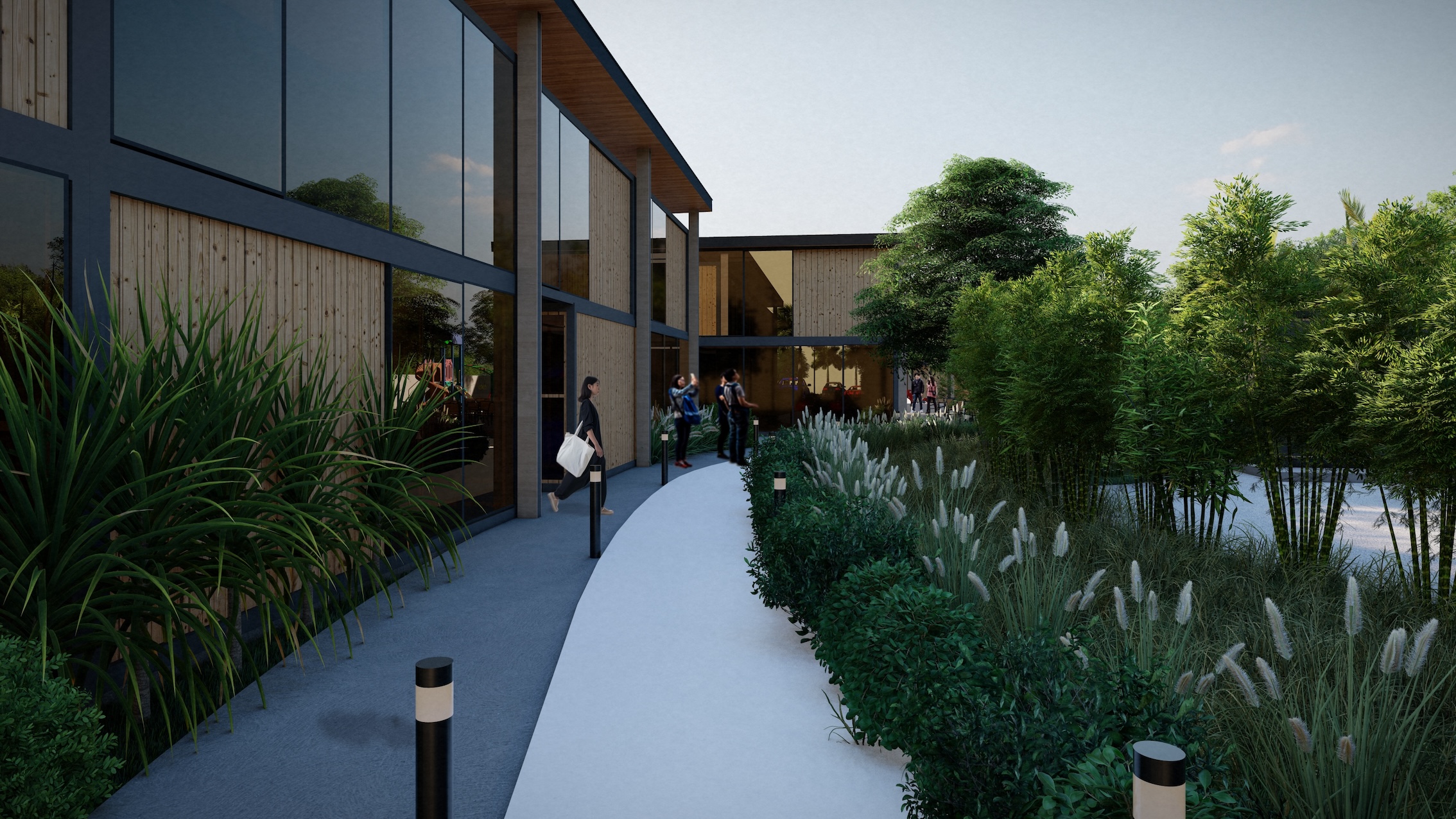 Meandering pathways allow pedestrian access throughout the whole development from the front of the site to the back where the office building is located. It runs through the food park and commercial area along the way.